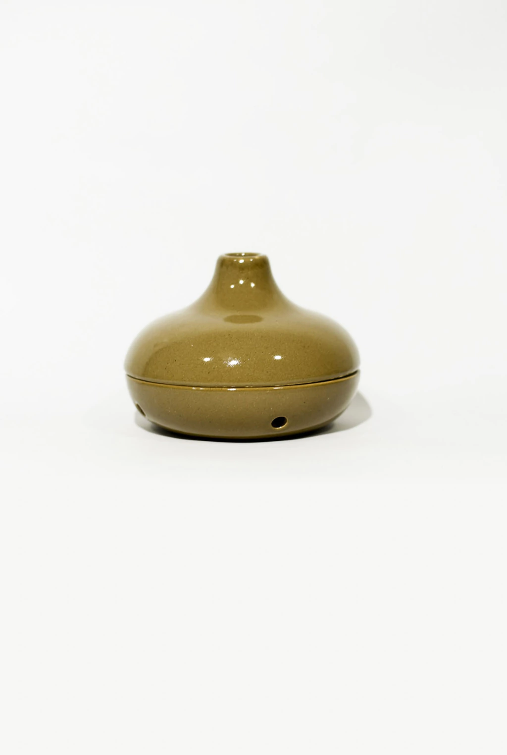 Cuenco de cerámica diseñado para contener espirales de mosquitos, compuesto por dos partes: tapa superior y base inferior, ambas elaboradas en losa cerámica.